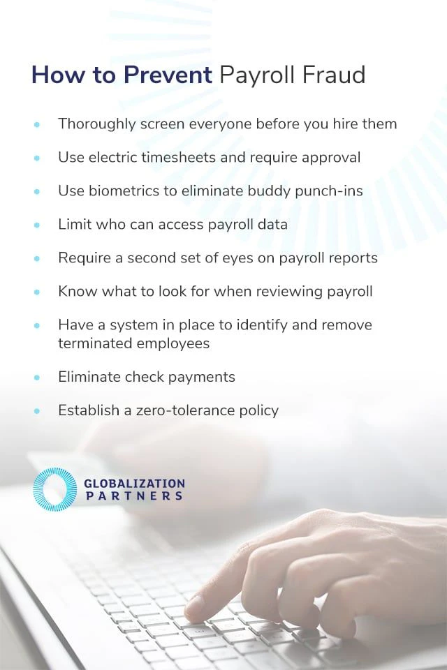 Global payroll fraud doesn’t have to cost your business hundreds of thousands of dollars. Knowing how to prevent payroll fraud can stop it in its tracks or before it ever begins. Here are steps you can take to prevent payroll fraud from affecting your business.